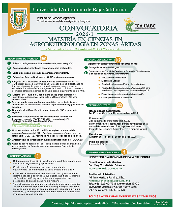 Maestria en Ciencias en Agrobiotecnología en Zonas Áridas